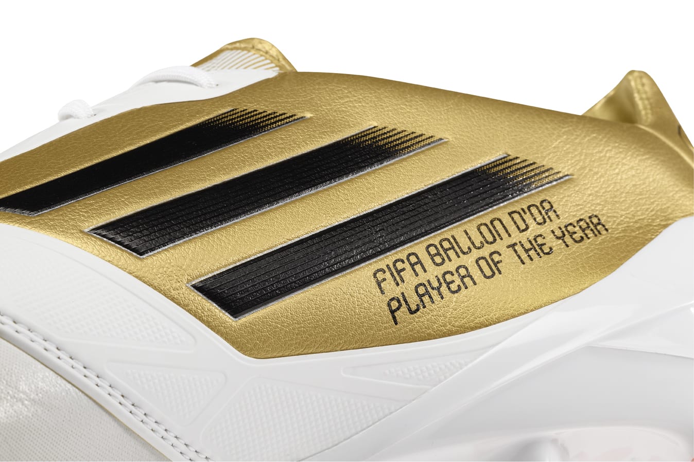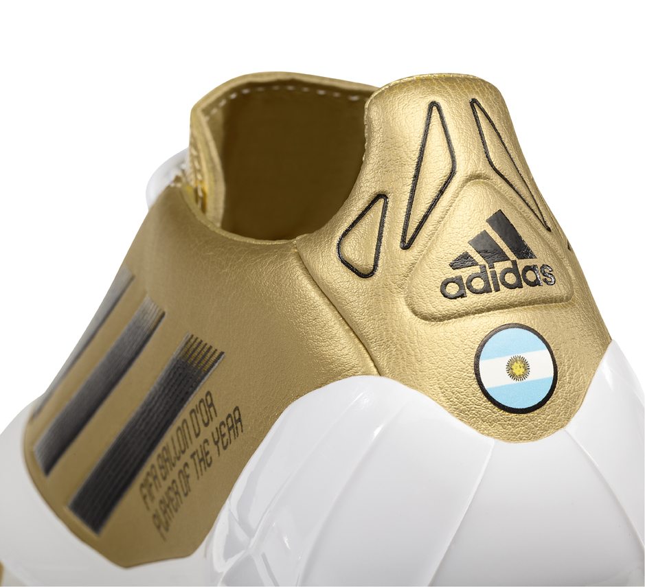 Per celebrare la conquista del terzo Pallone d’Oro consecutivo, solo Michel Platini c’era riuscito fino ad ora, Adidas ha creato appositamente per Lionel Messi una scarpa speciale dorata personalizzata che non sarà messa in commercio.