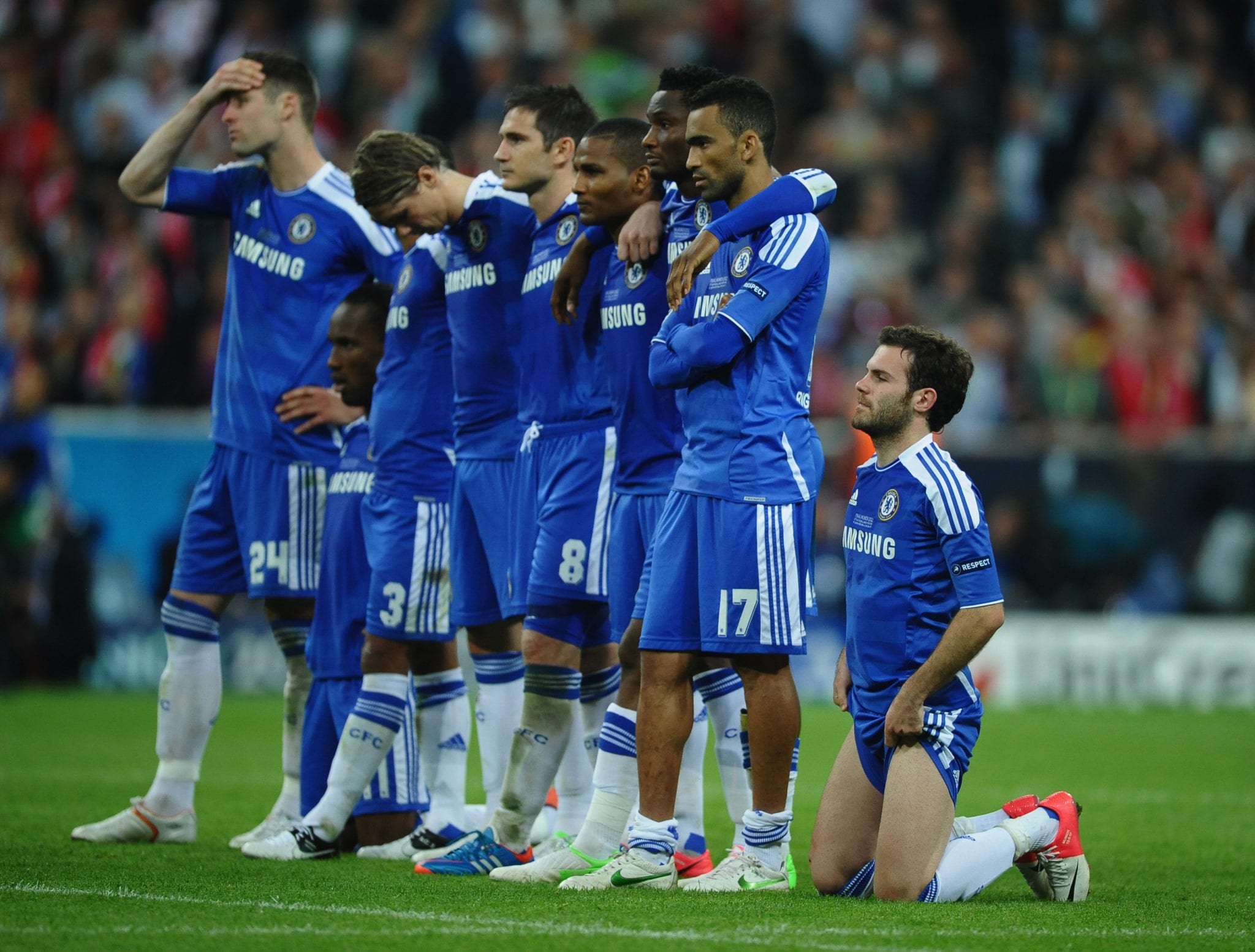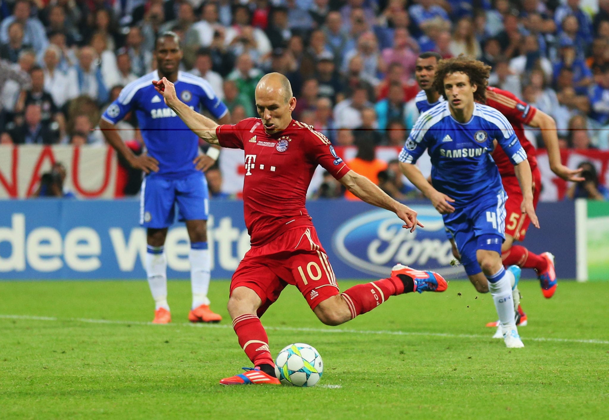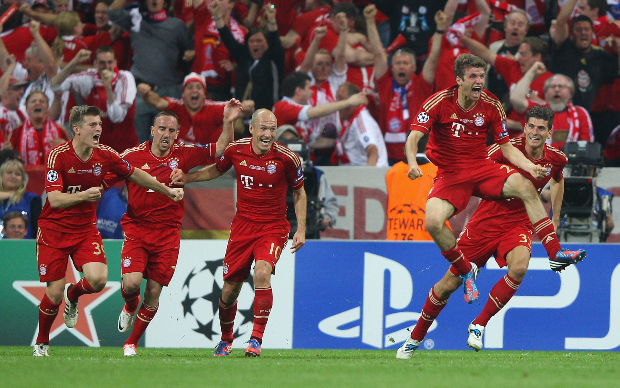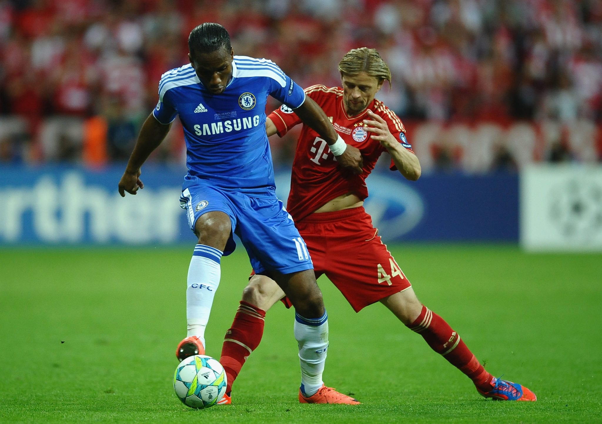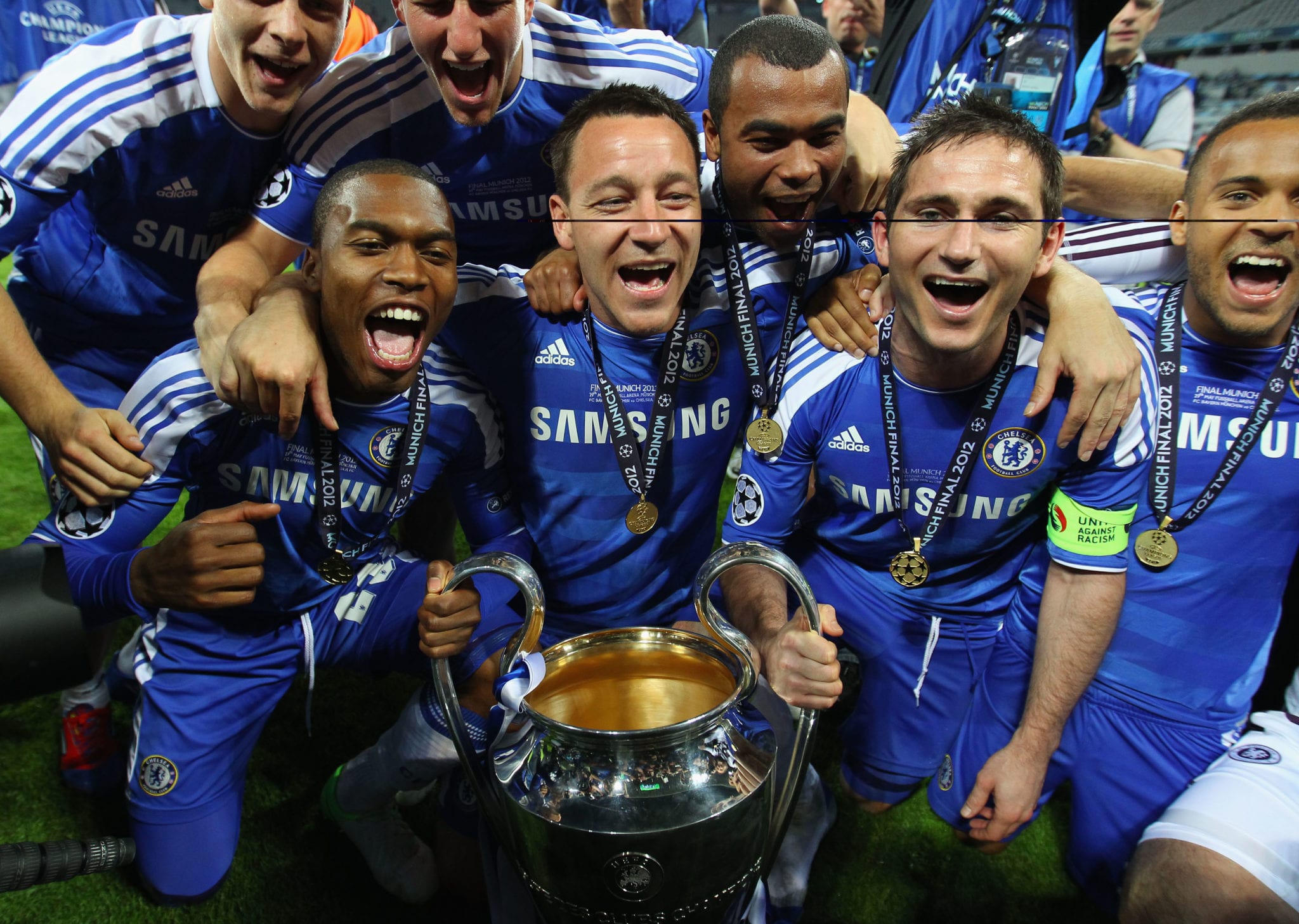 Il Chelsea vince la Champions League 2011/2012 battendo nella finale di Monaco i padroni di casa del Bayern Monaco 5-4 dopo i calci di rigore. I tempi regolamentari si erano conclusi sul risultato di 1-1 scaturito dalle reti all’83’ di Thomas Muller e all’88’ di Didier Drogba. Nei tempi supplementari non cambia il risultato non fosse altro per il rigore sbagliato da Arjen Robben ad inizio del primo tempo supplementare. Si va ai calci di rigore e il Chelsea scaccia via i fantasmi di Mosca 2008. Per i bavaresi decisivi gli errori di Olic e Schweinsteiger. Didier Drogba, uomo partita, segna il rigore decisivo e porta i blues sul trono d’Europa.