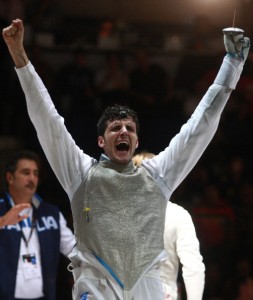 Un felicissimo Cassarà ©MARCELLO PATERNOSTRO/AFP/Getty Images Prima gioia mondiale per il mancino Cassarà che non conquistava una medaglia mondiale dalla spedizione cubana del 2003, troppe volte risucchiato dalle polemiche con il suo collega – nemico Andrea Baldini. La finale è stata molto emozionante con Aspromonte assolutamente perfetto nella sua condotta di gara fino al 11-6 a suo favore quando Cassarà inizia la sua splendida rimonta, agguantando il compagno di squadra sul 14 pari, per poi trafiggerlo con la stoccata decisiva per il 15-14 finale. Queste le parole di un commosso Cassarà intervistato dopo la finale: “Si è realizzato un sogno che facevo da quando ero un bambino di 5 anni, quando ero sotto ho ricordato il consiglio del mio allenatore, quello che si dà ai ragazzini, e mi sono piegato di più. Ho avuto tantissima paura, non ci pensavo più. Mi sono fatto prendere dal punteggio. Però poi ho ritrovato la calma. Valerio ed io ci conosciamo bene, nei ritiri stiamo assieme in camera e capita che litighiamo in allenamento, tirandoci dietro di tutto: nei giorni scorsi gli avevo ipotizzato una finale tra noi due con una cena in palio… Ora mi sono tolto un peso”. Prima medaglia mondiale sia per Valerio Aspromonte che per il siciliano di Modica Giorgio D’Avola con Andrea baldini che purtroppo si è fermato ai sedicesimi battuto 14-13 al minuto supplementare dal giapponese Chida. Tranne nel fioretto, le donne azzurre deludono nelle altre specialità, nella spada nessuna azzurra sul podio con l’unico rammarico rappresentato dalla sconfitta di Bianca Del Carretto che nell’assalto degli ottavi contro la romena Branza, è stata eliminata con una stoccata al minuto supplementare e solo dopo qualche minuto, scesa dalla pedana, si è ricordata della luce bianca che ha visto accendersi a bordo pedana. Nulla è valso il reclamo azzurro presentato troppo tardi quando oramai, la romena, era già scesa in pedana per l’incontro successivo.
