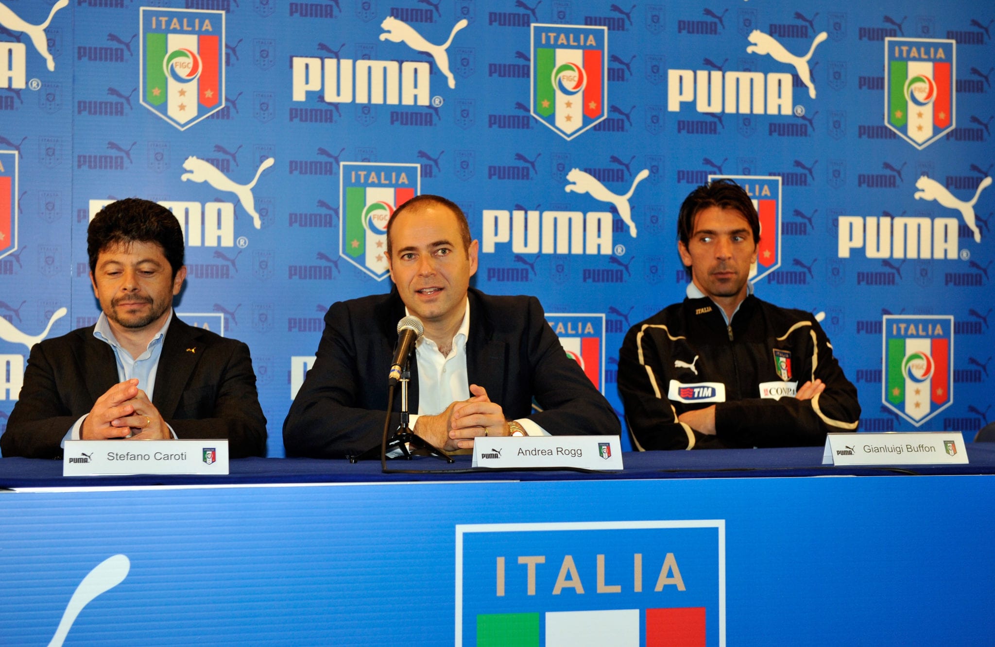 E’ stata presentata quest’oggi alla Borghesiana la nuova maglia della Nazionale per Euro 2012. La maglia, ideata ancora una volta da Puma è stata presentata da Stefano Caroti, Chief commercial Officier del Brand, insieme a Benedetta Geronzi responsabile dell’ufficio marketing della Federazione e per gli azzurri oltre al ct Prandelli hanno “posato” Gigi Buffon e Andrea Pirlo.