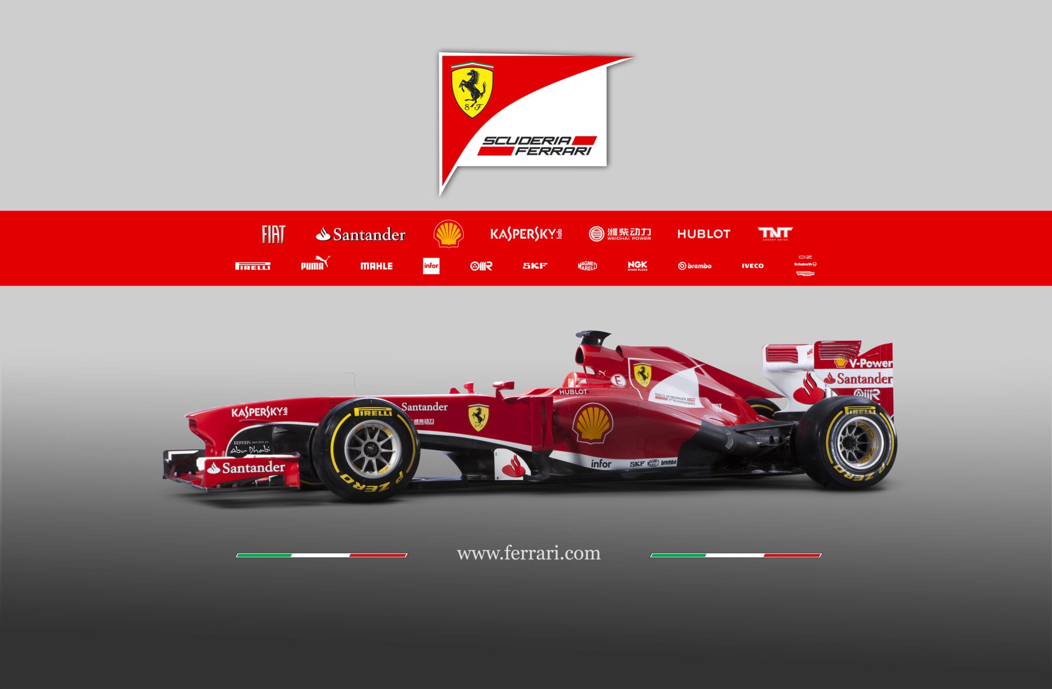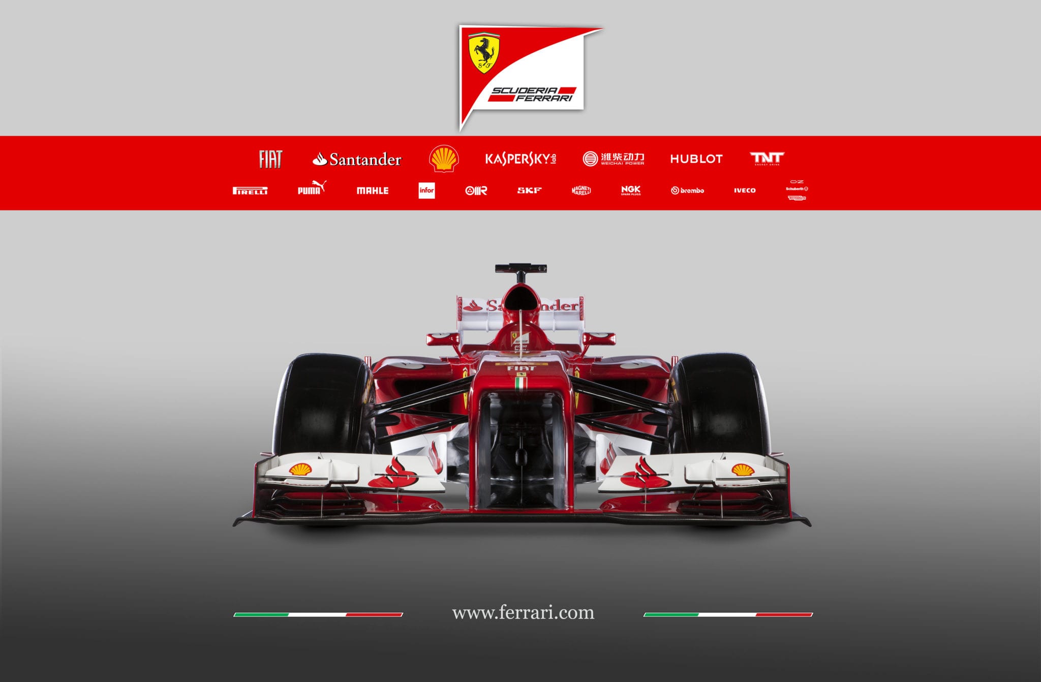 La 59esima creatura della casa di Maranello si presenta come una logica evoluzione della monoposto dello scorso anno, auto che è arrivata a giocarsi il Mondiale con Sebastian Vettel e la Red Bull fino all’ultima gara della stagione. Tuttavia ogni area della vettura, a detta dello stesso direttore tecnico Pat Fry, è stata profondamente rivista per massimizzare le prestazioni in pista. Rispetto al 2012, come sulla McLaren presentata ieri a Woking, è stata alzata l’altezza da terra della parte anteriore della vettura, il muso è più alto per garantire l’ingresso di una maggiore quantità d’aria ed è sparito l’antiestetico muso a scalino che sarà mascherato con il “vanity panel” , introdotto quest’anno dalla Fia. Immutato invece il sistema della sospensione anteriore, che come sulla F2012 adotterà ancora il pull-rod.